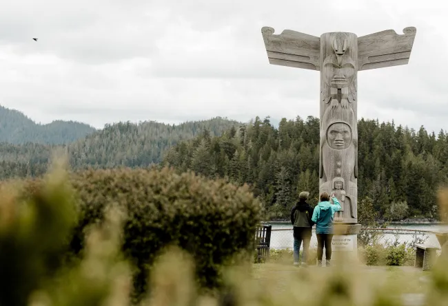 Once you get to Tofino you can head to the village green to see the Weeping Women carving and at Anchor Park where there is a thunderbird totem.