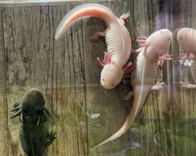 Here you can connect the dots between the dinosaur era and the evolutionary path up to present day, literally: Exploration Place has animal biomes housing living descendants, and reptilian and mammalian successors to the dinosaur era.