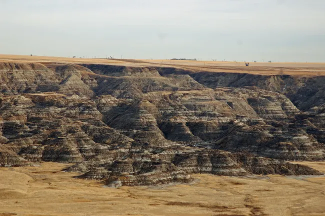 Take a day to tour central Alberta to see where the dinosaurs once roamed. On your way to the Royal Tyrrell Museum in Drumheller stop at the edge of Horseshoe Canyon on Highway 9. You can just stand there to take in the view or use the new staircase to slowly drop the valley bottom. The badlands landscape is very misleading and everything gets out of proportion so be prepared to drop a few hundred million of years as you descend into the deep valley.