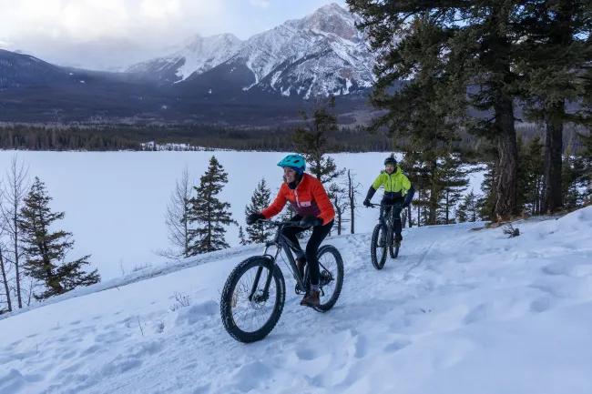 For another scenic, mostly flat ride, you can jump on trail 7/7a from the Fairmont Jasper Park Lodge and wind your way around the back of Lac Beauvert to Old Fort Point.