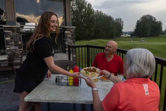 After your round of golf, settle in at the clubhouse for a delicious meal on the spacious covered patio. With surrounding views of the golf course and delicious food, the impressive 2.5 million dollar clubhouse gives you a perfect place to rest and recharge after a day spent golfing or exploring the area.