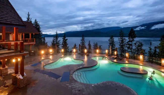 Today chalets and cottages range the hillside, coupling with the two hot pools, a cold plunge, a summer swimming pool, on-location spa, and the renowned Kingfisher restaurant to create an all-encompassing guest experience. While we soaked, the sun set behind the Monashee Mountains, its burnt-orange glow reflecting off the water, and we praised the Eden that is harvest season in Arrow Slocan.