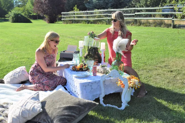 Vernon, BC - Who needs a vintage typewriter, antique camera, bouquet of feathers, lace tablecloth, china plates, sterling silver cutlery, a mountain of pillows and an array of faux fur throws at a picnic? You do!