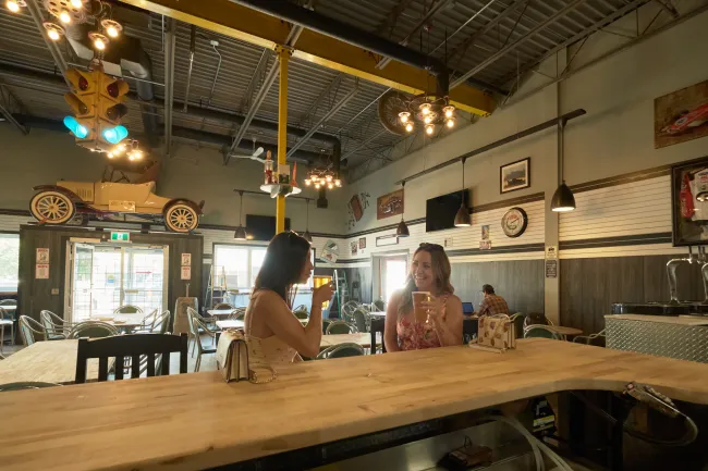 You're guaranteed a fun time at family-friendly The Garage Brewhouse and Pub (5015 50 Ave, Whitecourt, AB T7S 1N7), an automotive-themed craft brewery located in a former autobody garage.