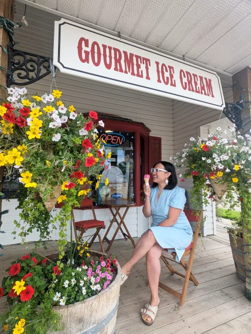 The shop (pictured above) is most famously known for the freshly ground coffee smell when you walk through the door, as well as housemade fudge and bearclaws. Check out the garden centre in the back and head out to the flower-lined front patio to enjoy some scoops of gourmet ice cream.