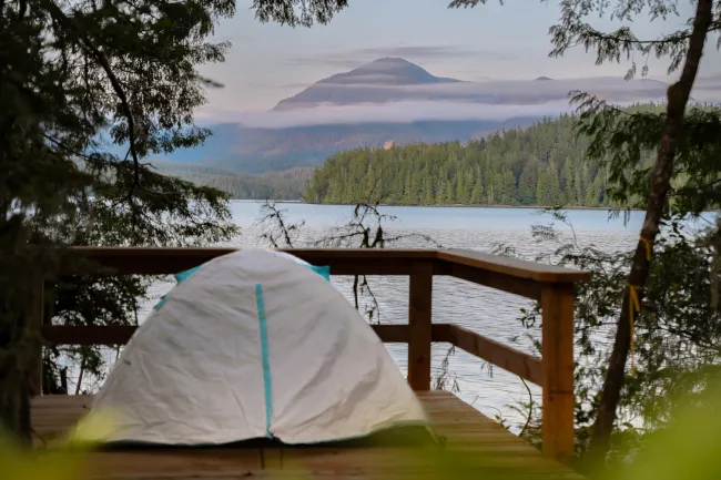 In the time since, Plonka and his Toquaht Nation team have expanded the site with more camping spots, cook shelters, gathering places, bike trails and marina upgrades. And now, camping platforms (more on those in a bit).