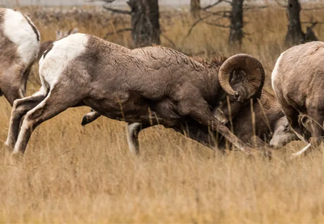 If you ever see a sheep with large, curled horns, it is best to not get too close. While they are not typically aggressive, big horn sheep can get hostile when agitated or during rutting season.