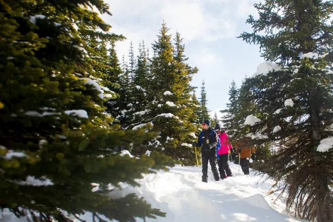 Going snowshoeing with a guide is a great way to learn about the topography and any animal tracks along the way.