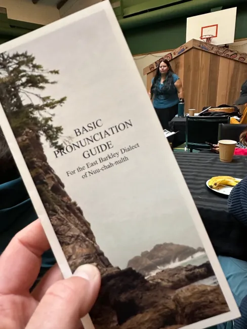 Over the festival experience we also learned about Nuu-chah-nulth language. Huu-ay-aht First Nations is part of a tribal council of 14 First Nations, Nuu-chah-nulth, given this collection of Nations share language across Vancouver Island.