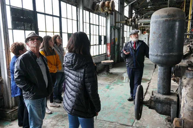 Local historian David Finch is a wealth of information on our tour that included people ranging in ages from 25 to 70. Starting off in the exhibit room, we looked at old black and white photos and artefacts that detailed how the plant operated and the jobs people did there. We moved on to explore the various facilities, such as the compressor plant, the scrubbing plant, and the gasoline and propane plant. It was interesting and kind of eerie to see the original equipment used to process gas in the early 1900s.
