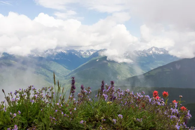 In just over 2 hours, you can drive east from Vancouver and be in the mountains of Manning Park. These trails have epic views of the Cascade mountains and landscapes coloured with wildflowers throughout July. Try Paintbrush or Skyline trails for views like these: